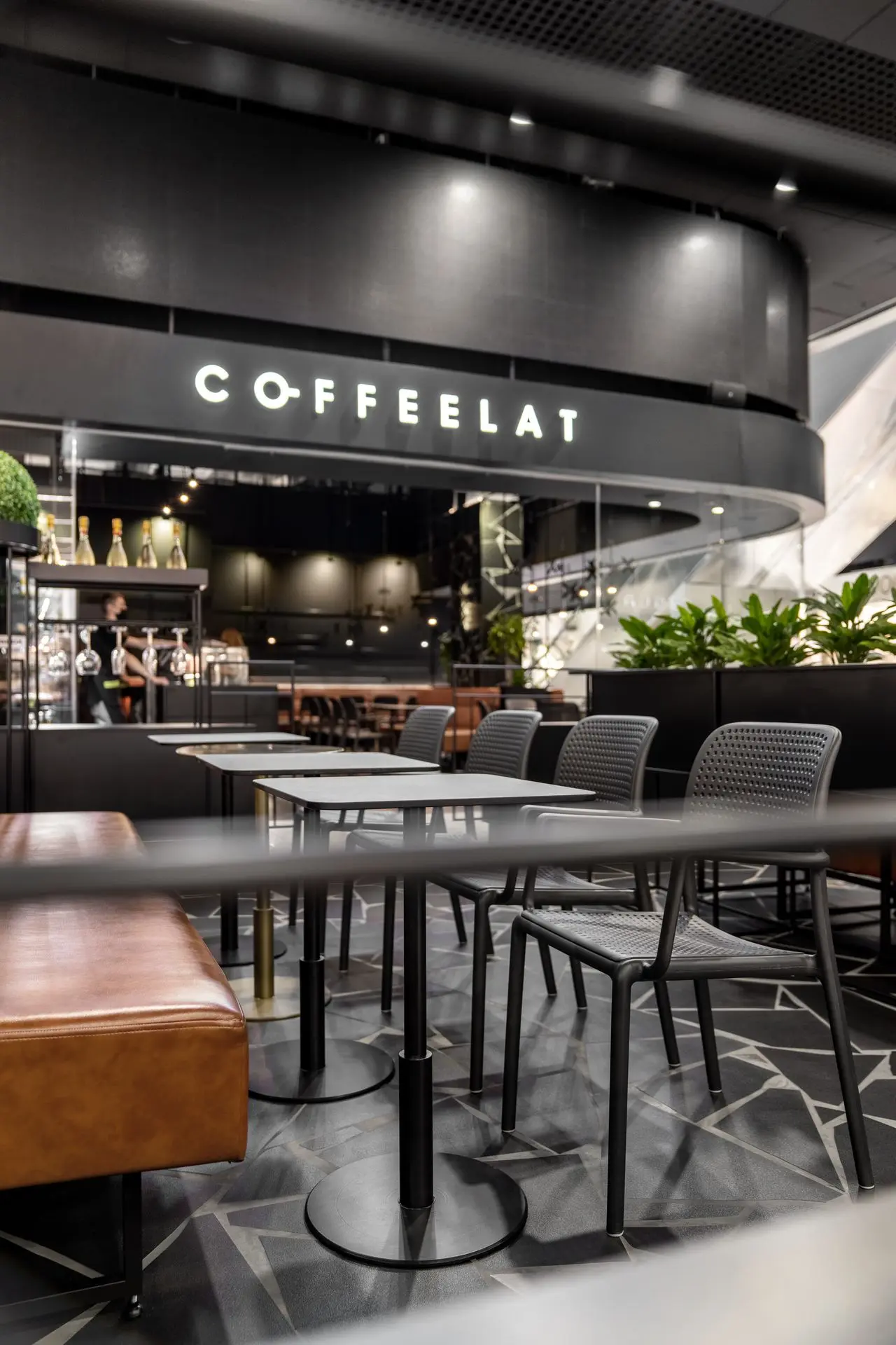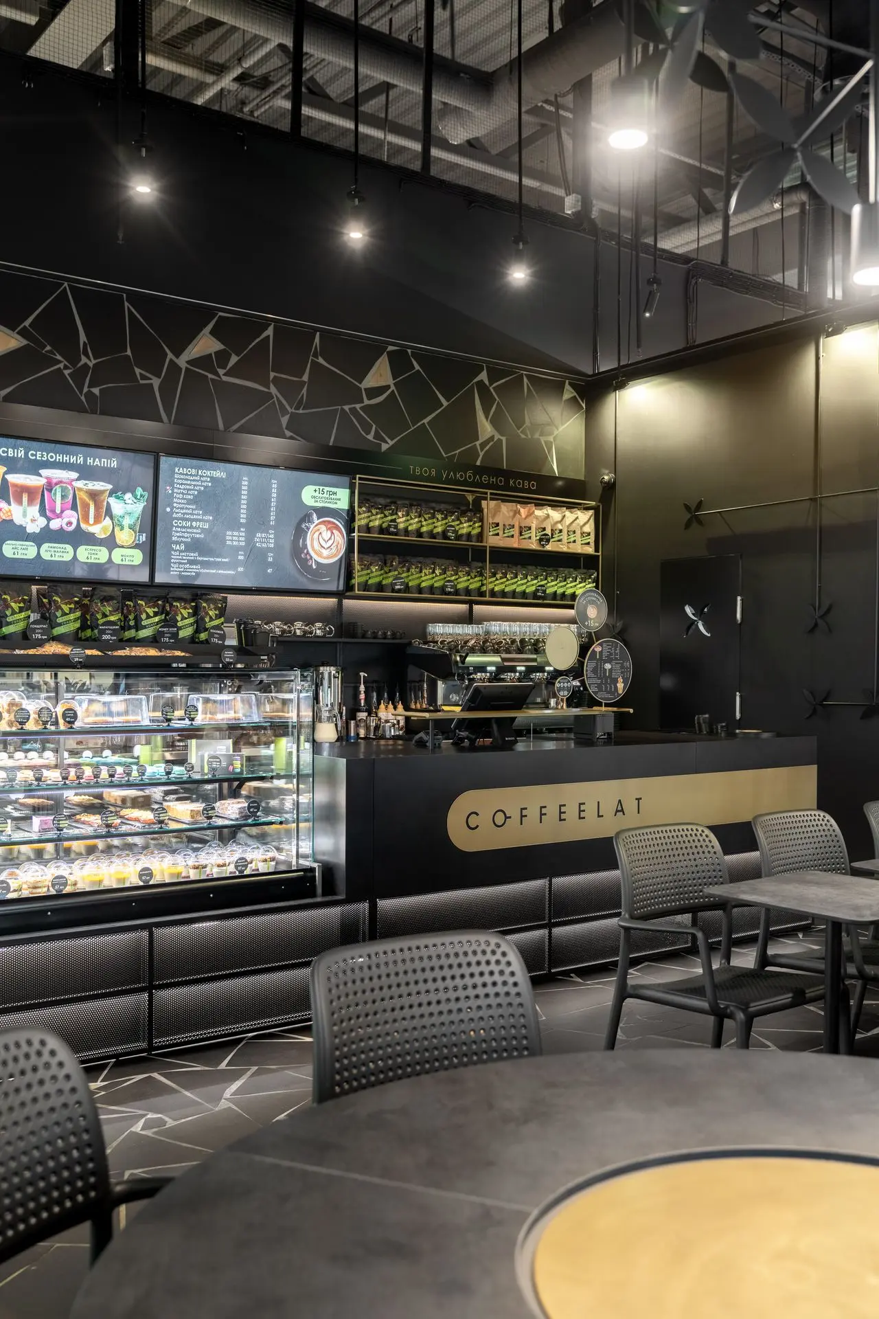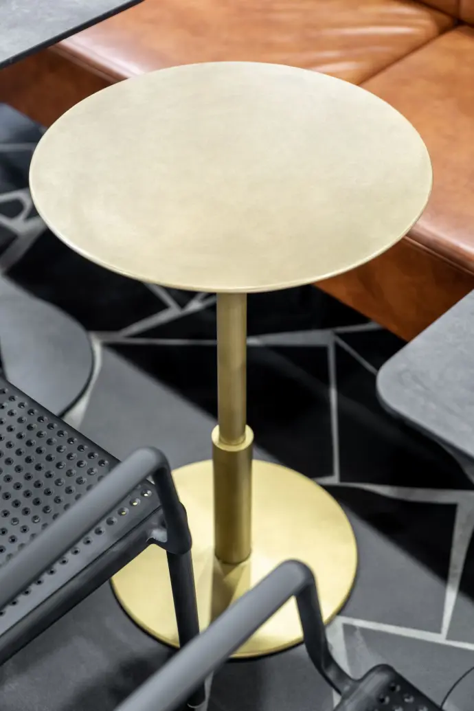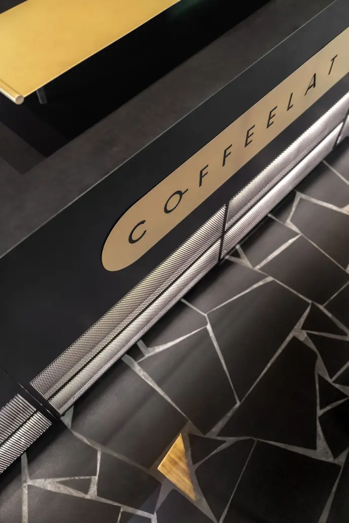Un café con atmósfera, saturado de aromas e imágenes del café. Grafito, latón y cuero: un conjunto infalible.