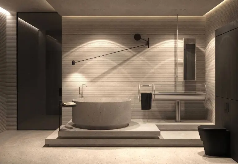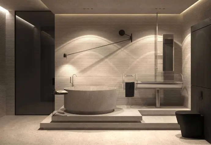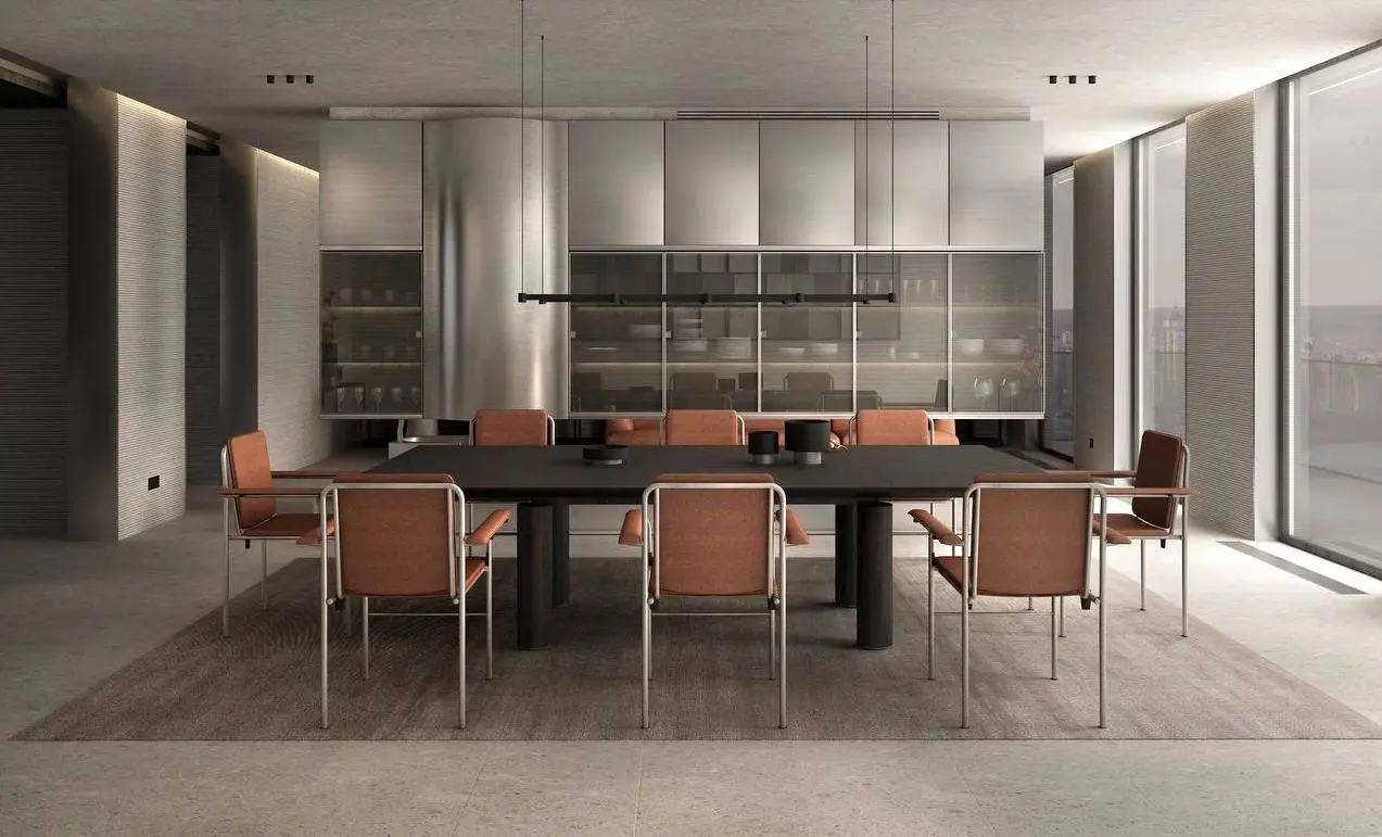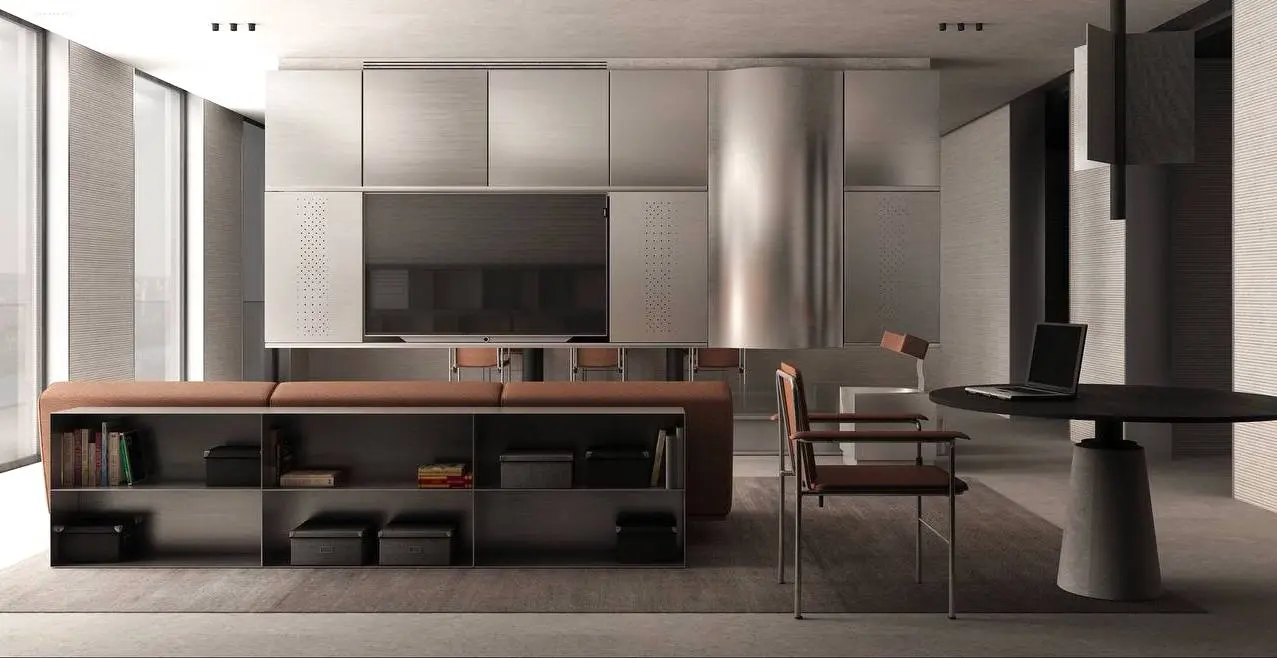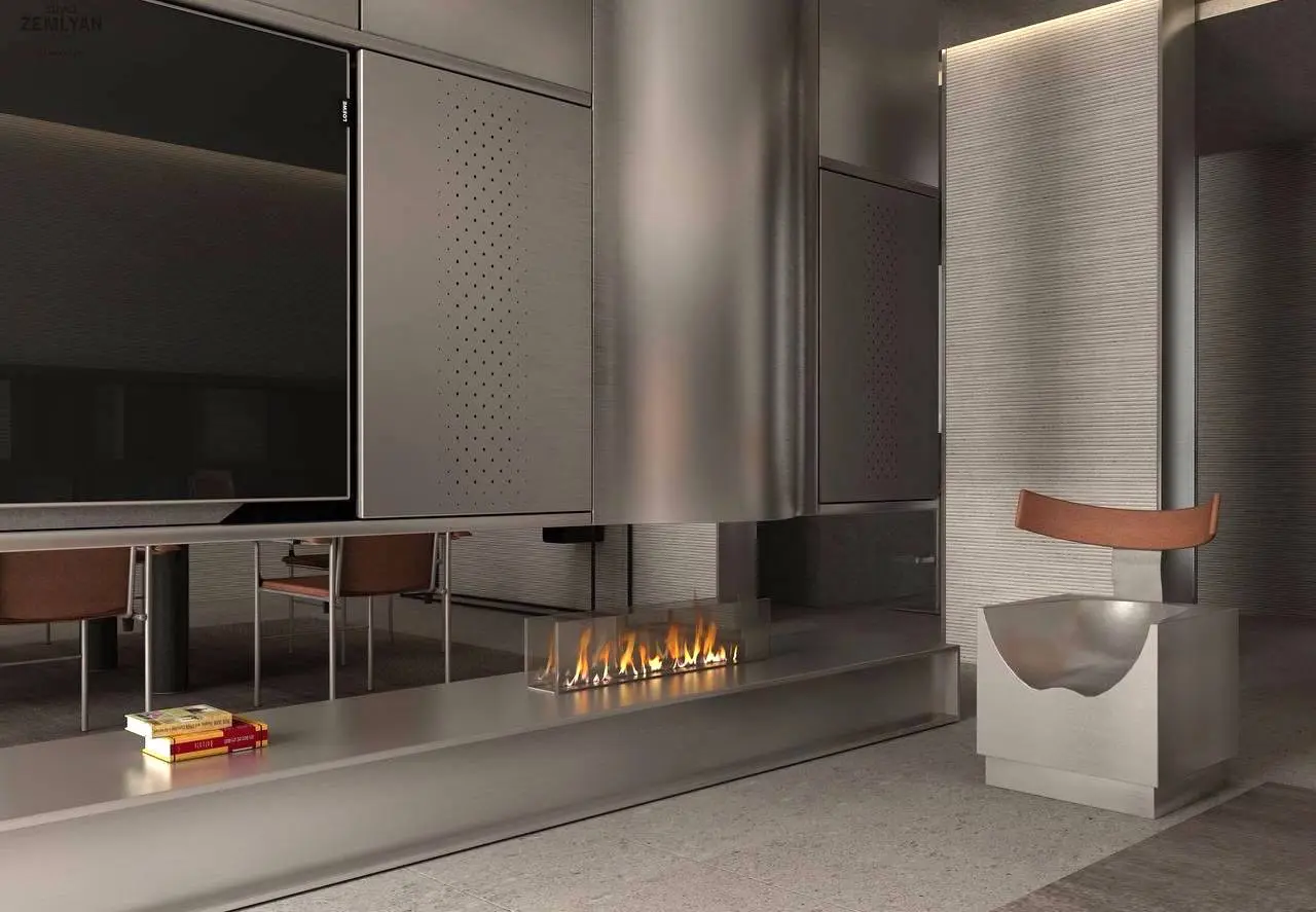 Apartamentos ultramodernos inspirados en las películas de Christopher Nolan. El leitmotiv principal del interior es el retrofuturismo